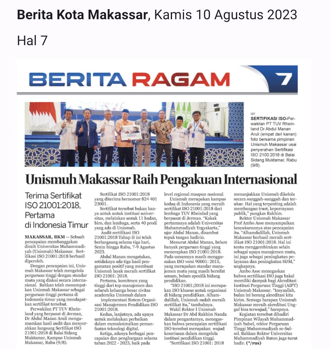 Unismuh Makassar Raih Pengakuan Internasional